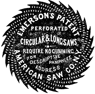 FRENCH BAND SAW MACHINES, SAWS, Taper Files, etc., Machines for Scroll, Re-sawing, and Log; Mongin & Co.'s Band Saw Blades, all Sizes, on hand and made to order.
