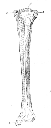 1, Spine; 2, internal tuberosity ; 3, external tuberosity ; 4, internal malleolus.
