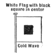 The weather-bureau has perfected a system of signals by which it can publish the weather-forecasts. Throughout the country are stationed agents who observe the indications of the weather and telegraph forecasts to thousands of towns and cities which then display the appropriate flag, chosen singly or in combination from among the preceding. Temperature is forecasted by placing a black flag above the weather-flag for higher, and below the weather-flag for lower, temperature. The approach of a cold wave is announced by displaying the above flag.