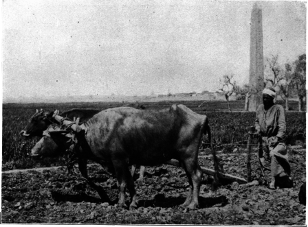 The Old Way. Plowing with oxen and a wooden plow. This is a recent photograph, showing that in Egypt they still plow just as they did thousands of years ago.