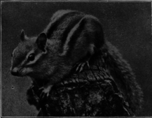 For the underground burrows of the chipmunks, look in the deepest woods, around old stumps, logs and boulders. Look sharp. Tail and all the chipmunk is less than a foot long, and he is just the color of rotten wood. Even the black and white stripes on his back are mere lights and shadows. A sunny, woodsy streak, he flashes across the open, stops stock still, upright, alert, and is gone. You are not sure you saw him at all. Perhaps you heard his gleeful "chip, chip, chip!" It is a challenge. He would just as soon lead you a merry chase as not. Little soldier, every log is a breastwork, every stump a sentry box, every screen of undergrowth a retreat. And for all he burrows, he is not a true ground squirrel. He can climb, and his habits are those of the tree squirrels.