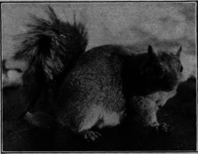 What a pretty little fellow! All silver-gray, brownish-gray or even black, he is, for squirrels of the same family vary in color, just as foxes do. A little ten-inch furry bundle of fun, with a ten-inch banner of a tail! He plays tag, leap-frog, runs races on walls, rolls up and coasts down hill. He is just as curious about you as you are about him. He is very gossipy, chattering all day, but he attends to business, too. If he is hungry, he will sit up and show you how to crack and eat a nut. Then he will carry away what you give him, one nut at a time, and bury each, lightly, in a separate place. He will come back for them, by and by, and carry them into his high pantry in a tree.